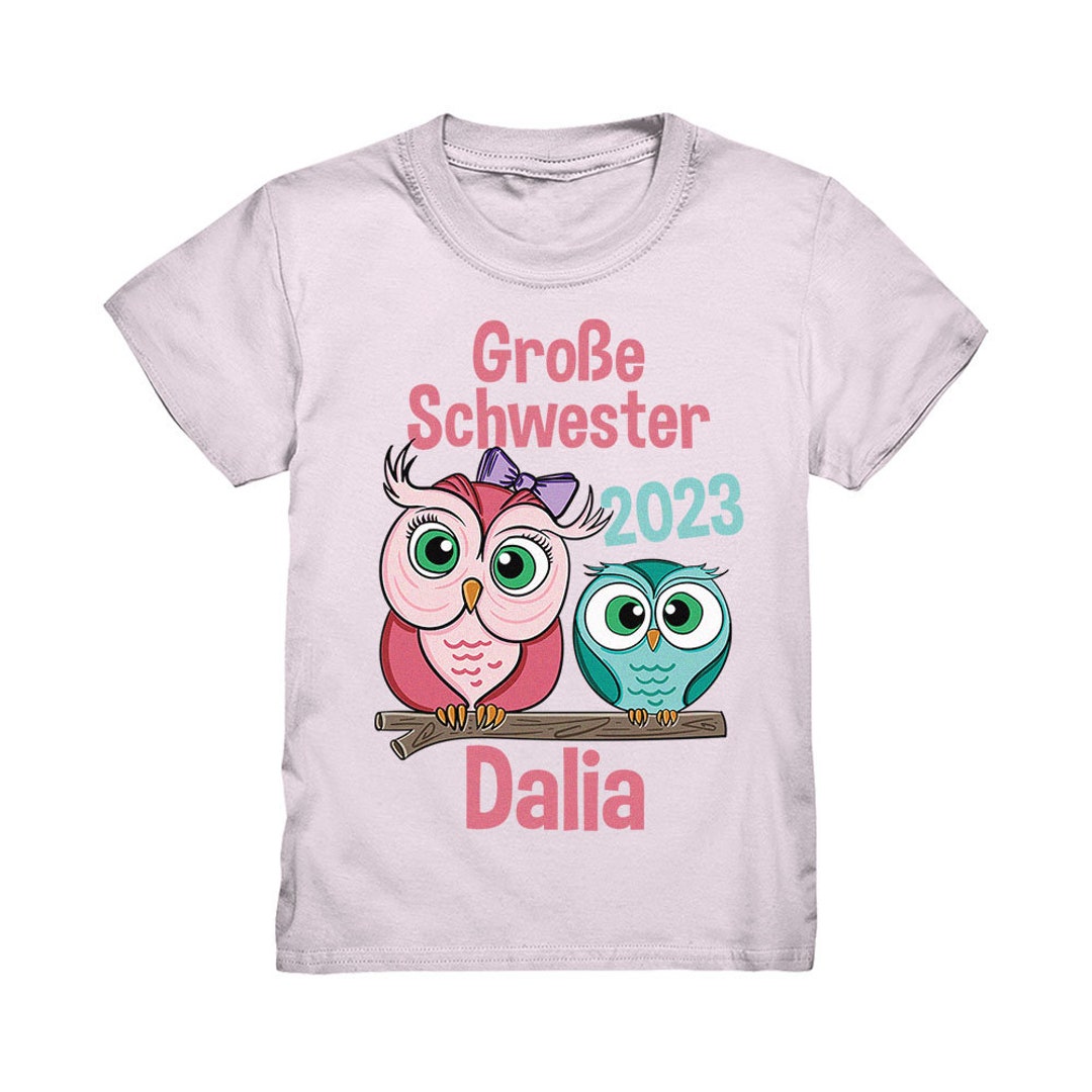 Große Schwester 2023 2024 T Shirt Personalisiert Eule Geschenk